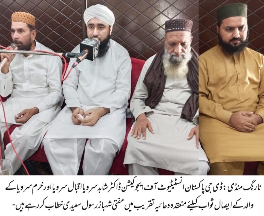 ڈی جی پاکستان انسٹیٹیوٹ آف ایجوکیشن ڈاکٹر محمد شاہد سرویا، اقبال سرویا اور خرم سرویا کے والد مرحوم حنیف سرویا کے ایصالِ ثواب کے لیے دیوان خاص شادی ہال نارنگ میں ایک پُروقار دعائیہ تقریب کا انعقاد کیا گیا۔ تقریب میں مختلف جامعات کے وائس چانسلرز، اساتذہ، سماجی رہنما اور معززینِ علاقہ نے بڑی تعداد میں شرکت کی۔