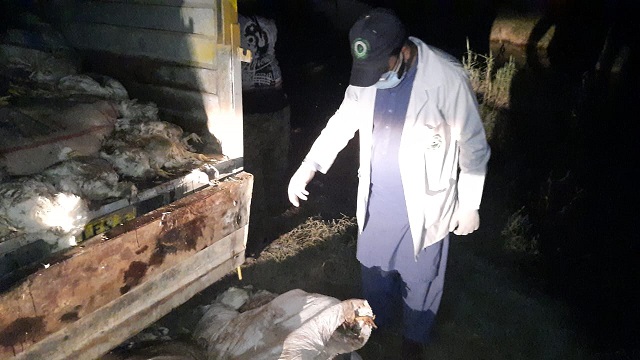 مردہ مرغیاں بوریوں اور ڈرموں میں رکھی پائی تھی مضر صحت مردہ مرغیوں کو ڈمپنگ سائٹ پر تلف کردیا گیا مردہ مرغیاں LES-7377نمبری گاڑی میں گوشت تیار کرنے کے لیے لے جا رہیں تھے مردہ مرغیوں کے سپلائر کے خلاف مقدمہ درج ،مردہ مرغیوں کا خوراک میں استعمال معدہ اور جگر کے موذی امراض میں مبتلا کر سکتا ہے ،جعلساز مافیا زیادہ منافع کی لالچ میں خوراک نہیں بیماری فروخت کرتا ہے