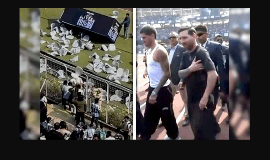 غیر ملکی میڈیا رپورٹس کے مطابق ’گوٹ ٹور‘ کے تحت منعقدہ اس ایونٹ میں شائقین کی بڑی تعداد شریک تھی، مگر اسٹیڈیم میں بدانتظامی نے میسی کے مداحوں کی خوشی کو شدید مایوسی میں بدل دیا۔ اطلاعات کے مطابق لیونل میسی مقامی وقت کے مطابق صبح 11 بج کر 15 منٹ پر اسٹیڈیم پہنچے اور تقریباً 10 سے 20 منٹ تک وہاں موجود رہے۔ اس دوران وی آئی پیز، سیکیورٹی اہلکاروں اور خصوصی مہمانوں نے اسٹار فٹبالر کو گھیرے رکھا، جس کے باعث اسٹینڈز میں موجود ہزاروں شائقین میسی کی ایک واضح جھلک بھی نہ دیکھ سکے۔میڈیا رپورٹس کے مطابق میسی کو اسٹیڈیم کا مکمل چکر لگانا تھا، تاہم بدنظمی اور بڑھتی کشیدگی کے باعث وہ ایسا نہ کر سکے۔ صورتحال بگڑنے پر منتظمین نے سیکیورٹی خدشات کے پیش نظر فوری طور پر میسی کو اسٹیڈیم سے نکال لیا۔ بعد ازاں سیکیورٹی رسک کے باعث مجسمے کی نقاب کشائی آن لائن کرنی پڑی۔