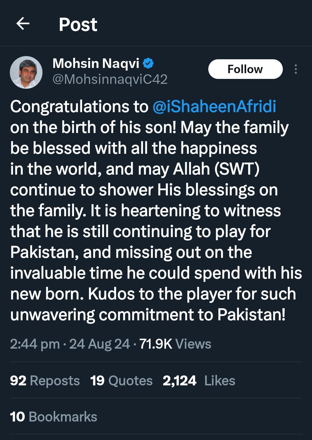 راولپنڈی ٹیسٹ میں بنگلادیش نے پاکستان کو 10 وکٹوں سے شکست دے دی۔ اس ٹیسٹ کے دوران پاکستان کی ٹیم دوسری اننگز میں 146 رنز بنا کر آؤٹ ہو گئی اور بنگلادیش کو جیت کے لیے صرف 30 رنز کا ہدف دیا۔ بنگلادیش نے یہ ہدف بغیر کسی نقصان کے پورا کیا اور اپنی جیت کو یقینی بنایا۔اس تاریخی کامیابی کے بعد بنگلادیش کرکٹ ٹیم کی عالمی کرکٹ میں ایک نئی شناخت بنی ہے۔ پاکستان کے خلاف یہ فتح ان کے کرکٹ کیریئر کی ایک اہم کامیابی ہے، جس نے انہیں عالمی کرکٹ میں ایک مضبوط حریف کے طور پر پیش کیا ہے۔ محسن نقوی کے بیان سے واضح ہے کہ پی سی بی مستقبل میں قومی ٹیم کی کارکردگی کو بہتر بنانے کے لیے اقدامات کرے گا۔ ان کے مطابق، پاکستانی ٹیم کو اپنی کارکردگی میں بہتری لانے کی ضرورت ہے اور انہیں اگلے میچوں میں اپنی پرفارمنس کو بہتر بنانا ہوگا۔
