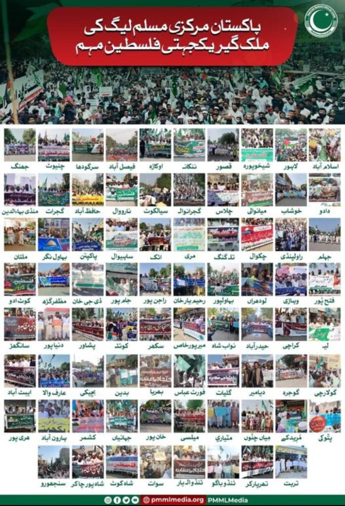 مرکزی مسلم لیگ نے قصور سمیت پاکستان کے 68 بڑے شہروں میں اسرائیل کے خلاف احتجاجی مظاہرہ کیا