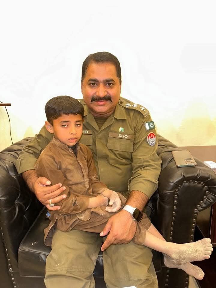 معصوم واسع خوف اور صدمے کے باعث ایس ایچ او کے گلے سے لپٹا رہا، جس نے بچے کو دلاسہ دیا اور مکمل تحفظ کا یقین دلایا۔