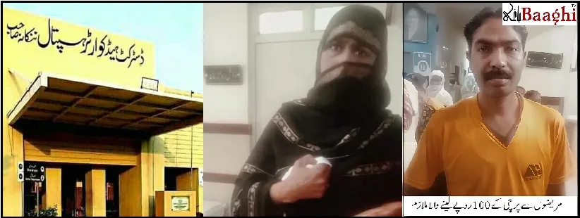 ڈسٹرکٹ ہیڈ کوارٹر ہسپتال میں آوٹ ڈور فری پرچی سو روپے میں ملنے لگی,ڈی ایچ کیو ہسپتال ننکانہ میں تعینات عملہ نے کرپشن کا نیا دروازہ ڈھونڈ لیا,آوٹ ڈور پرچی پر تعینات عملہ کی ہٹ دھرمی کےباعث خواتین مریضوں کو شدید مشکلات کا سامنا, سلام دعا اور شفارش والوں کو چار چار پرچیاں جاری کی جا رہی ہیں ,خاتون مریضہ، ڈپٹی کمشنر سے فوری نوٹس اور اصلاح احوال کا مطالبہ