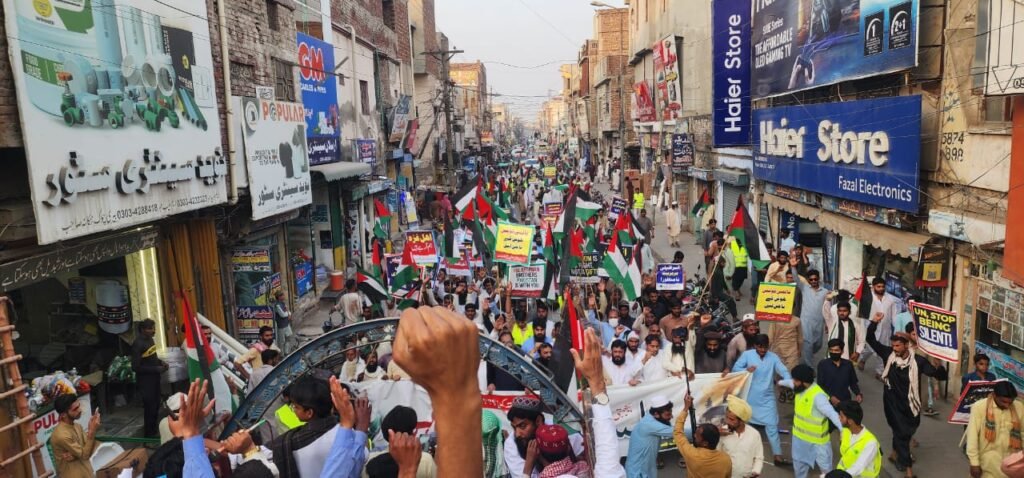 بیری چوک میں ریلی کے شرکاء سے خطاب کرتے ہوئے قاری محمد یعقوب شیخ نے کہا کہ دنیا میں امن کے لیے مسئلہ فلسطین کا جلد حل ضروری ہے۔ اسرائیل نہتے فلسطینیوں پر ظلم کے پہاڑ گرا رہا ہے اور امریکہ اور برطانیہ کی سربراہی میں فلسطینیوں پر ظلم ہو رہا ہے۔ انہوں نے کہا کہ اسرائیلی حملوں سے فلسطین میں صرف عمارتیں گری ہیں، فلسطینیوں کے حوصلے نہیں گرے اور وہ آج بھی اپنی آزادی کے لیے قربانیاں دے رہے ہیں۔ قاری محمد یعقوب شیخ نے کہا کہ اسرائیل نے اپنے آباؤ اجداد کی طرح معاہدے کو توڑا ہے۔ انہوں نے 57 اسلامی ممالک کے سربراہان سے ہوش کے ناخن لینے کا مطالبہ کیا اور زور دیا کہ اتحاد اور جہاد سے اسرائیل کو فلسطین سے نکالنے کی ضرورت ہے۔