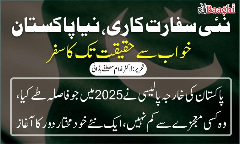 "2025 وہ سال ہے جب پاکستان نے سفارتکاری کی دنیا میں اپنی نئی پہچان پیدا کی ہے ،جیسے ایک خواب نے حقیقت کا لباس پہن لیا ہو، اور ایک خاموش خواہش نے عالمی منظرنامے پر اپنی آواز بلند کر دی ہو۔ مگر اس کامیابی کا تسلسل برقرار رکھنے کے لیے اندرونی اصلاحات ناگزیر ہیں۔ معیشت کی مضبوطی، گورننس میں شفافیت اور سیاسی استحکام وہ بنیادیں ہیں جن پر خارجہ پالیسی کا یہ نیا ڈھانچہ کھڑا ہے۔ اگر اندرونی سطح پر اتفاقِ رائے اور پالیسی تسلسل قائم نہ رہا تو یہ سفارتی پیش رفت وقتی ثابت ہو سکتی ہے۔ تاہم اگر پاکستان نے اپنی موجودہ سمت کو برقرار رکھا تو آنے والے برسوں میں وہ خطے کے لیے ایک اقتصادی پل، امن کا ضامن اور بین الاقوامی تعلقات کا قابلِ اعتماد مرکز بن سکتا ہے۔