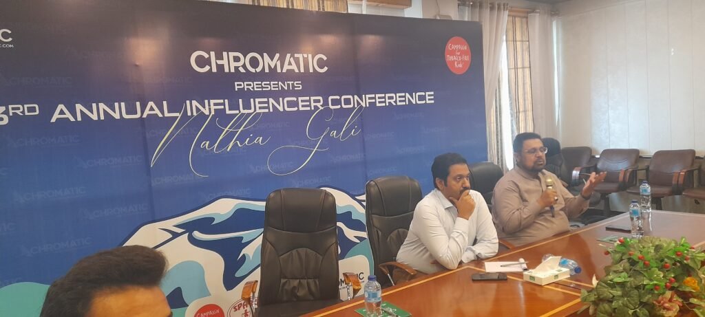 کرومیٹک کے زیر اہتمام نتھیا گلی میں تیسری سالانہ انفلوانسر کانفرنس کا انعقاد کیا گیا کانفرنس میں انفلوانسر نے شرکت کی ۔کانفرنس مین کرومیٹک کے طیب رضا ، مستنصر، منصور نے بھئ شرکت کی ، کانفرنس سے کرومیٹک کے سی ای او شارق خان اور ڈاکٹر ضیاء الدین نے خطاب کیا اور انفلوانسر کو تمباکو نوشی، ای سگریٹ کے خلاف آگاہی دی