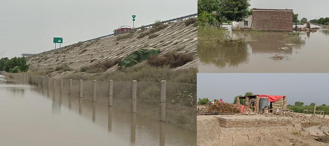 سیلابی پانی پانی ملتان سکھر موٹر وے ایم 5 کے قریب موجود ، موٹر وے کو نقصان پہنچنے کا خدشہ پیدا ہوگیا ہے،