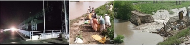 اوچ شریف باغی ٹی وی (نامہ نگار حبیب خان) دریائے ستلج کنارے نشیبی علاقوں میں تباہ کاریاں جاری، بستی چاکر خان کے قریب زمیندارہ بند ٹوٹنے سے فصلیں برباد، زمینی راستے منقطع،لوگ اپنی مدد آپ کے تحت شگاف بھرنے کیلئے کوشاں، ہیڈ پنجند کے مقام پر پانی کی سطح بلند، آمد 132572 کیوسک اور اخراج 118472 کیوسک ریکارڈ،ہیڈ پنجند پر انتظامات مایوس کن، رات کے اوقات میں ہیڈ پنجند پر بجلی غائب ،دریائے ستلج کے سیلابی پانی میں مزید اضافے کا امکان، متعدد مواضعات میں زمیندارہ بند ٹوٹنے کے خطرے کے پیش نظر مکین پہرے پر تعینات،