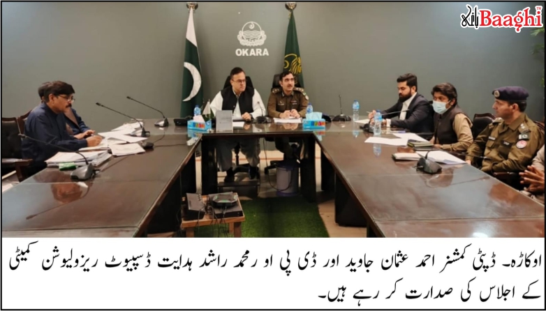 اوکاڑہ (نامہ نگار ملک ظفر)ڈپٹی کمشنر احمد عثمان جاوید اور ڈی پی او محمد راشد ہدایت کی زیر صدارت ڈسپیوٹ ریزولوشن کمیٹی کا اجلاس منعقد ہوا جس میں جائیداد سے متعلق 15 کیسز کی سماعت کی گئی۔ اجلاس میں ایڈیشنل ڈپٹی کمشنر ریونیو محمد شجین وستر، تینوں تحصیلوں کے اسسٹنٹ کمشنرز اور ایس ڈی پی اوز نے بھی شرکت کی۔