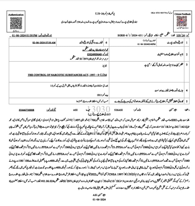 اوکاڑہ(نامہ نگارملک ظفر) ایڈیشنل سیشن جج عشرت عباس کی عدالت نے منشیات فروشی کے مقدمے میں ملوث ملزم کو جرم ثابت ہونے پر 20 سال قید اور 5 لاکھ روپے جرمانے کی سزا کا حکم سنا دیا ہے۔ استغاثہ کے مطابق تھانہ ستگھرہ پولیس نے جون 2024 میں خفیہ اطلاع پر کارروائی کرتے ہوئے چک نمبر 10 ون آر کے قریب سے ایک بڑے ڈرگ ڈیلر ناصر علی ولد اللہ بخش کو گرفتار کیا تھا، جس کے قبضے سے 5 کلو 260 گرام چرس برآمد ہوئی تھی۔ پولیس نے ملزم کے خلاف فوری طور پر تھانہ ستگھرہ میں مقدمہ نمبر 359/24 درج کر کے تفتیش کا آغاز کیا اور تمام قانونی تقاضے پورے کرنے کے بعد چالان عدالت میں پیش کیا۔