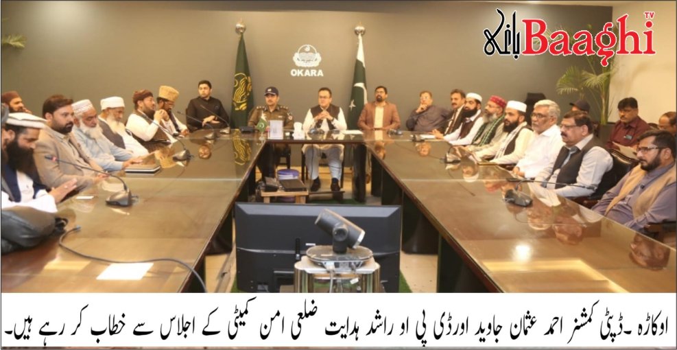 اوکاڑہ (نامہ نگار ملک ظفر) ڈپٹی کمشنر احمد عثمان جاوید اور ڈی پی او راشد ہدایت کی زیر صدارت ضلعی امن کمیٹی کا اجلاس منعقد ہوا۔ اجلاس میں ایڈیشنل ڈپٹی کمشنر ریونیو محمد ابراہیم ارباب، ایڈیشنل ڈپٹی کمشنر جنرل حافظ محمد طیب، سول ڈیفنس آفیسر وقار اکبر، صدر بار ایسوسی ایشن اصغر خان، صدر انجمن تاجران شیخ ریاض سمیت مختلف مسالک کے علمائے کرام اور امن کمیٹی کے ممبران نے شرکت کی۔