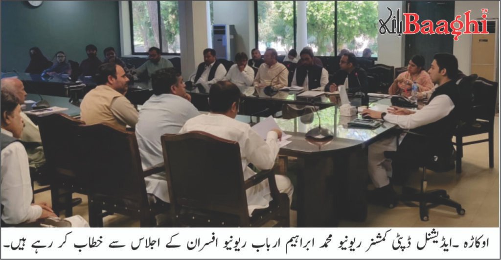 اوکاڑہ (نامہ نگارملک ظفر) ایڈیشنل ڈپٹی کمشنر ریونیو محمد ابراہیم ارباب کی زیر صدارت ریونیو افسران کا اجلاس منعقد ہوا۔ اجلاس میں تینوں تحصیلوں کے اسسٹنٹ کمشنرز سمیت ریونیو افسران نے شرکت کی۔