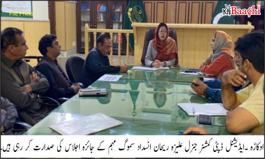 اوکاڑہ (نامہ نگار ملک ظفر) ایڈیشنل ڈپٹی کمشنر جنرل علیزہ ریحان کی زیرِ صدارت انسدادِ سموگ مہم سے متعلق اہم اجلاس منعقد ہوا۔ اجلاس میں ڈپٹی ڈائریکٹر ماحولیات محمد عبدالقیوم، سیکرٹری ڈی آر ڈی اے اقصیٰ ریاض، انڈسٹریز، ٹریفک پولیس اور دیگر محکموں کے افسران شریک ہوئے۔
