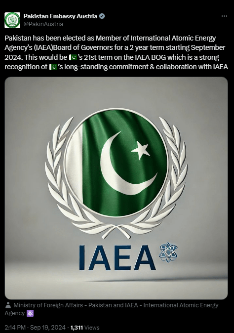 پاکستان کو آئی اے ای اے بورڈ آف گورنرز کا رکن منتخب کر لیا گیا