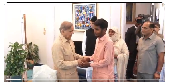 وزیراعظم محمد شہباز شریف سے گجرانوالہ بورڈ کے میٹرک کے امتحانات میں اول پوزیشن حاصل کرنے والے طالب علم جمشید علی کی ملاقات ہوئی ہے