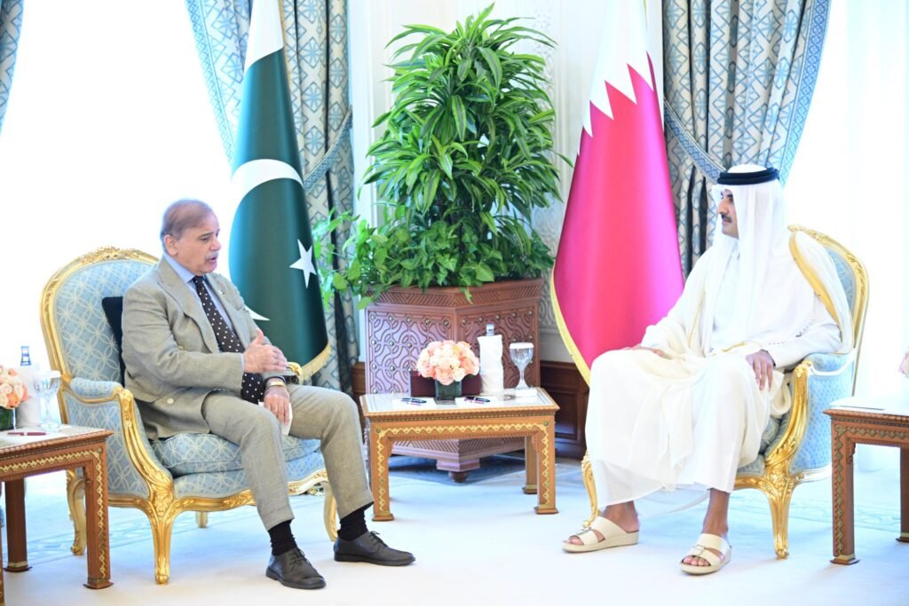 وزیر اعظم محمد شہباز شریف نے قطر کے امیر عزت مآب شیخ تمیم بن حمد آل ثانی سے آج دوحہ میں وفود کی سطح پر ملاقات کی ۔ اس سے قبل دونوں رہنماؤں کے درمیان ون آن ون ملاقات بھی ہوئی جس میں دو طرفہ تعلقات کے وسیع معاملات پر تبادلہء خیال ہوا۔