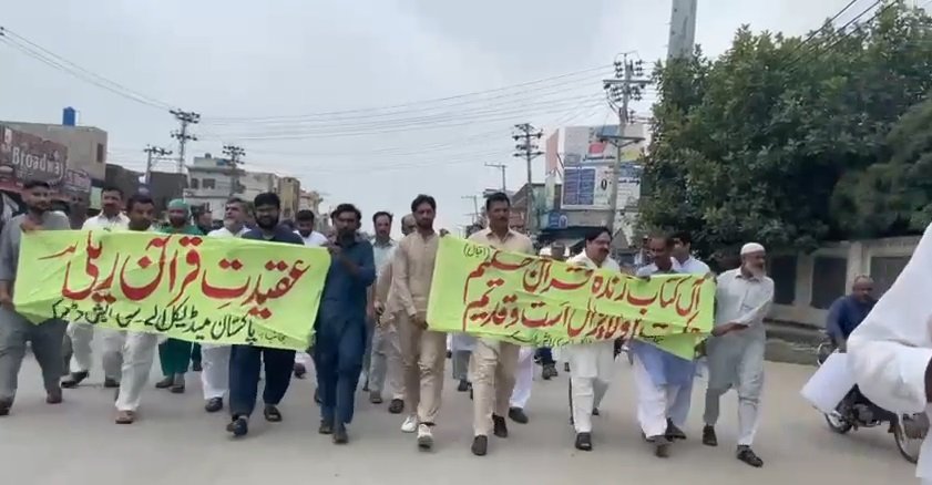 تفصیل کے مطابق ڈسکہ سول ہسپتال میں پاکستان میڈیکل ایسوسی ایشن اور نرسنگ سٹاف کی شراکت سے عقیدتِ قرآن ریلی نکالی گئی ،ریلی میں ڈاکٹرز ، پیرا میڈیکل سٹاف ، نرسز اور عوام کی کثیر تعداد نے شرکت کی،