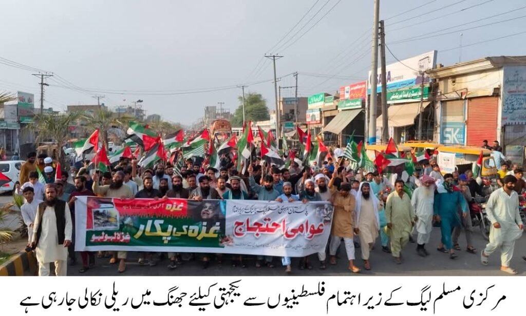 پاکستان مرکزی مسلم لیگ کے زیراہتمام غزہ لہو لہو ،ہفتہ یکجتہی فلسطین مہم کے تحت تیسرے روز بدھ کو بھی کئی شہروں میں احتجاجی مظاہروں ، ریلیوں، کانفرنسز کا انعقاد کیا گیا،جمعہ کو مختلف شہروں میں ملک گیر احتجاج کیا جائے گا،ننکانہ،بھکر، جھنگ، حافظ آباد، مظفر گڑھ و دیگر شہروں میں احتجاجی مظاہروں میں ہزاروں افراد نے شرکت کی اور فلسطینی عوام سے اظہار یکجہتی کیا،اس موقع پر شرکا نے اسرائیل کے خلاف نعرے بازی کی ، اسرائیلی پرچم ،اسرائیلی وزیراعظم کے پتلے نذر آتش کئے گئے، احتجاجی مظاہروں کے شرکا نے بینرز،پلے کارڈز اٹھا رکھے تھے جن پر فلسطینیوں کے حق میں اور اسرائیل کے خلاف نعرے درج تھے،احتجاجی مظاہروں سے مرکزی مسلم لیگ کے رہنماؤں جوائنٹ سیکرٹری قاری محمد یعقوب شیخ،شیخ فیاض احمد، رائے منیر احمد کھرل، شیر افگن،عرفان مہیس،احمد محبوب و دیگر نے خطاب کیا.