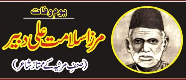 مرزا سلامت علی دبیر اردو کےان نامور شعراء میں سے تھےجنہوں نے مرثیہ نگاری کو ایک نئی جدت اور خوبصورتی سے نوازا۔ آپ کو میر انیس کے ساتھ مرثیہ نگاری کا موجد اور بانی کہا جاتا ہے، مرزا دبیر 29 اگست 1803ء کو دلی میں پیدا ہوئے، انہوں نے بچپن میں ہی محرم کی مجالس میں مرثیے پڑھنے شروع کر دیئے تھے، انہوں نے میر مظفر ضمیر کی شاگردی میں شاعری کا آغاز کیا۔ دبیر اپنے زمانے کے بہت بڑے دانشور بھی تھے۔انہوں نے دہلی سے لکھنؤ کی طرف ہجرت کی جہاں انہیں مرثیہ نگاری پر ذیادہ بہتر کام کرنے کا ماحول دستیاب ہوا، مولانا محمد حسن آزاد اپنی کتاب ’’آب حیات‘‘ میں ’’تذکرۂ سراپا سکون‘‘ کے حوالے سے لکھتے ہیں کہ مرزا دبیر کے والد صاحب کے نام کے حوالے سے دو نام ملتے ہیں۔ ایک ’’غلام حسین‘‘ دوسرا ’’مرزا ٓغاجان کاغذ فروش‘‘۔ مرزا دبیر کا 06مارچ 1875ء میں انتقال ہوا اور انہیں وہیں پر دفن کیا گیا۔