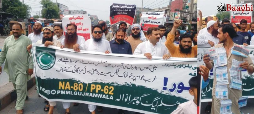 گوجرانوالہ باغی ٹی وی (نامہ نگار محمد رمضان نوشاہی ) بجلی گیس پیٹرول کی قیمتوں میں مسلسل اضافے اور غریب عوام پر ظالمانہ ٹیکسوں کی بھرمار اور مسلسل بڑھتی ہوئی مہنگائی کے خلاف پاکستان مرکزی مسلم لیگ گوجرانولہ کے زیر اہتمام کھیالی اڈا اور دیگر علاقوں میں احتجاجی مظاہرہ کیا گیا،مظاہرین نے گلے میں بل ڈال کر حکو مت کیخلاف شدید نعرے بازی کی۔