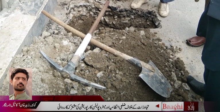 کوئٹہ،باغی ٹی وی (زبیرآکاخیل) لیاقت بازار میں تجاوزات کے خلاف ضلعی انتظامیہ اور میٹروپولیٹن کارپوریشن کی مشترکہ کارروائی صوبائی دارالحکومت کے وسطی ایریا لیاقت بازار میں تجاوزات قائم کرنے والوں کے خلاف ضلعی انتظامیہ اور میٹروپولیٹن کارپوریشن کا مشترکہ کریک ڈائون تجاوزات کا خاتمہ کر دیا گیا ڈپٹی کمشنر کوئٹہ شہک بلوچ کی ہدایت پر اے سی سٹی عطا المنعم اسپیشل مجسٹریٹ جواد زہری انچارج اینٹی انکروچمنٹ سیل اور دیگر عملے نے کارروائی کرتے ہوئے تجاوزات کا خاتمہ کیا اور تجاوزات قائم کرنے والوں کا سامان قبضے میں لے لیا گیا