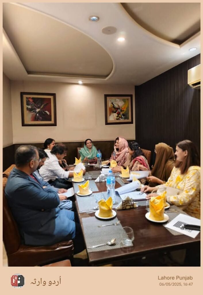 قرۃالعین شعیب آرگنائزر نیشنل ڈویلپمنٹ کنسلٹنٹ ہیں اور ان کے شوہر شعیب منہاج ایجوکیشن سوسائٹی کے ڈائریکٹر آپریشنز ہیں دونوں اپنی قومی زبان اردو سے محبت کرتے ہیں اور اس زبان و ادب کی ترویج کے لیے کوشاں ہیں. قرۃالعین العین اردو ورثہ کے نام سے ویب سائٹ بھی چلا رہی ہیں گزشتہ ہفتے انہوں نے ایک میٹنگ رکھی تاکہ زبان و ادب کے حوالے سے اہل قلم سے مشاورت کی جائے اور ادب کی مختلف اصناف پر بات کی جائے اور اردو ورثہ کے لیے معیاری تخلیقات پر کام کیا جائے