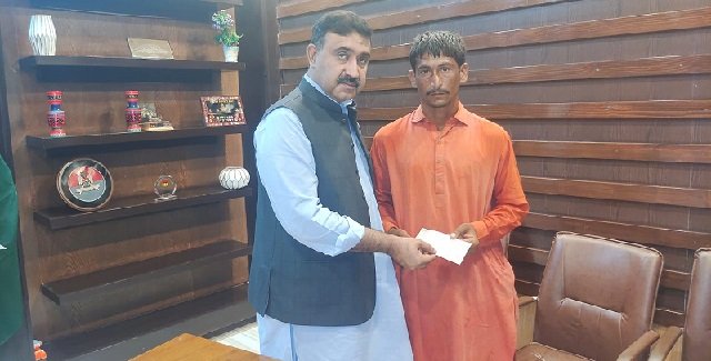 کندھ کوٹ ،باغی ٹی و (نانہ نگارمختیار احمد اعوان)حکومت سندھ کے اعلان کے مطابق نیشنل ڈیزاسٹر مینجمنٹ اتھارٹی کی طرف سے ڈپٹی کمشنر فرخ شہزاد قریشی نے ضلع کشمور میں سیلاب اور بارشوں سے جاں بحق ہونے والے افراد میں مزید ایک کے لواحق قربان علی سمرو میں امدادی چیک تقسیم کیا ۔