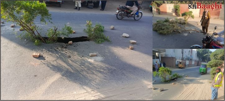 بہاولپور (باغی ٹی وی ،نامہ نگارحبیب خان) بغداد پولیس اسٹیشن کے قریب روڈ پر سیوریج لائن کی خرابی کے باعث سڑک کا درمیانی حصہ زمین میں دھنس گیا، جس کے نتیجے میں سڑک پر ایک بڑا گڑھا بن گیا۔