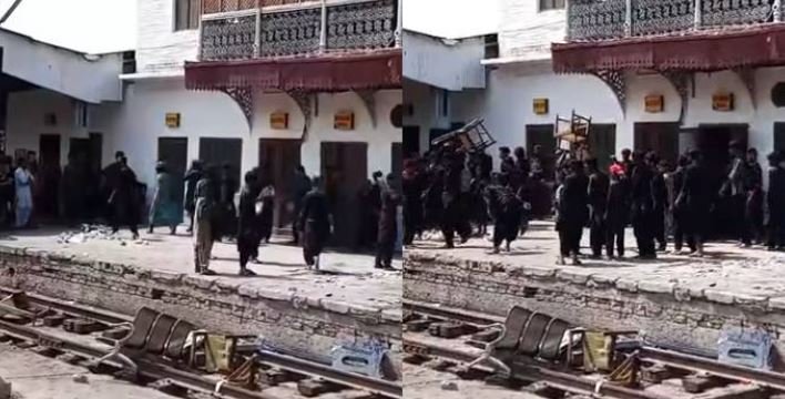 عینی شاہدین کے مطابق مشتعل ہجوم نے اسٹیشن پر نصب لوہے اور لکڑی کی کرسیاں، میز اور پانی کے کولر کو اٹھا کر ریلوے ٹریک پر پھینک دیا۔ عملے کے دفاتر سے کرسیاں نکال کر باہر پھینکی گئیں، دروازوں پر لگے شیشے توڑ دیے گئے اور املاک کو شدید نقصان پہنچایا گیا۔یہ ویڈیو ایک مسافر نے اس وقت بنائی جب اسٹیشن پر کھڑی ایک دوسری ٹرین پر بھی پتھراؤ کیا گیا، خوش قسمتی سے اس حملے میں کوئی مسافر زخمی نہیں ہوا۔