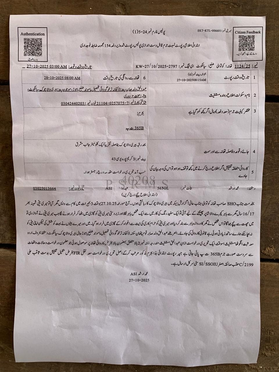 سیالکوٹ (باغی ٹی وی ،ڈسٹرکٹ رپورٹرمدثررتو کی رپورٹ)13 سالہ بچی اغوا کرکے افغانستان منتقل، 50 لاکھ تاوان طلب،نامزد ملزمان کی رہائی پر سوالات، والد کا وزیراعلیٰ پنجاب سے نوٹس لینے کا مطالبہ
