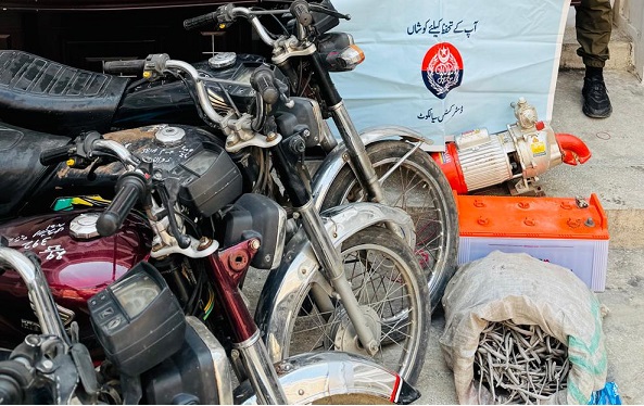 پولیس نے ملزمان کے قبضے سے 2 لاکھ 80 ہزار روپے نقدی، 4 عدد موٹر سائیکلیں، سرجیکل کا سامان، پانی کی الیکٹرک موٹر، 2 بیٹریاں اور وارداتوں میں استعمال ہونے والا 30 بور کے 2 پسٹل بمعہ متعدد گولیاں برآمد کر لیں۔