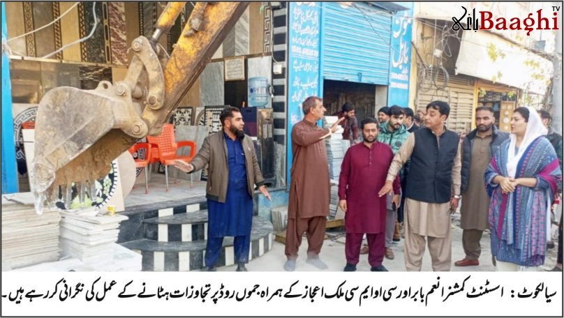 ڈپٹی کمشنر سیالکوٹ محمد ذوالقرنین لنگڑیال نے بتایا ہے کہ ضلع میں تجاوزات کے خاتمے کے لیے آپریشن کامیابی سے جاری ہے۔ رواں ماہ 50 بازاروں اور اہم سڑکوں کو تجاوزات سے پاک کر دیا گیا ہے، جبکہ مزید 31 بازاروں کو کلیئر کرنے کے لیے کارروائیاں جاری ہیں۔