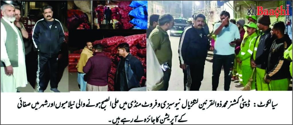 سیالکوٹ،باغی ٹی وی( بیوروچیف شاہد ریاض) ڈپٹی کمشنر محمد ذوالقرنین لنگڑیال نے علی الصبح نیو سبزی و فروٹ منڈی ایمن آباد کا دورہ کیا اور سبزیوں کی قیمتوں کے تعین کی نگرانی کی۔ انہوں نے سیکرٹری مارکیٹ کمیٹی عبداللہ ملک کو ہدایت کی کہ پرائس لسٹ کی بروقت مارکیٹ میں تقسیم کو یقینی بنایا جائے۔