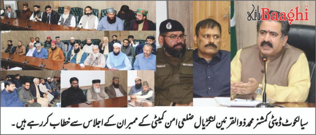 ان خیالات کا اظہار انہوں نے آج یوم علی کرم اللہ وجہہ کی شہادت، یوم القدس اور جمعۃ الوداع کے اجتماعات کے سلسلے میں ضلعی امن کمیٹی سیالکوٹ کے ممبران کے اجلاس سے خطاب کرتے ہوئے کیا۔ اجلاس میں ایڈیشنل ڈپٹی کمشنر جنرل ایوب بخاری، ڈی ایس پی لیگل شعیب مختار اور دیگر متعلقہ افسران بھی موجود تھے۔