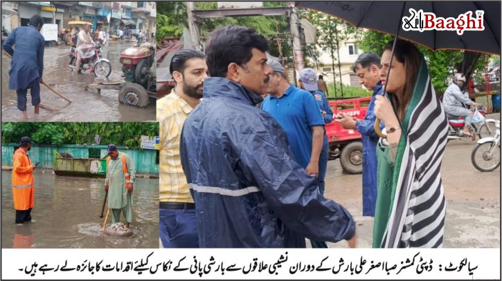سیالکوٹ (بیوروچیف خرم میر) ڈپٹی کمشنر سیالکوٹ صبا اصغر علی نے آج صبح ہونے والی شدید بارش کے بعد شہر کے مختلف علاقوں میں قائم رین ایمرجنسی کیمپس، ڈسپوزل اسٹیشنز، ڈی واٹرنگ سیٹس اور سینی ٹیشن عملے کی کارکردگی کا ہنگامی دورہ کیا۔ انہوں نے موقع پر موجود افسران کو ہدایت کی کہ بارش کے پانی کی فوری نکاسی کو یقینی بنایا جائے اور تمام چوکنگ پوائنٹس پر متعلقہ عملہ ہر وقت موجود رہے تاکہ کسی بھی جگہ پانی جمع ہونے کی شکایت نہ ہو۔