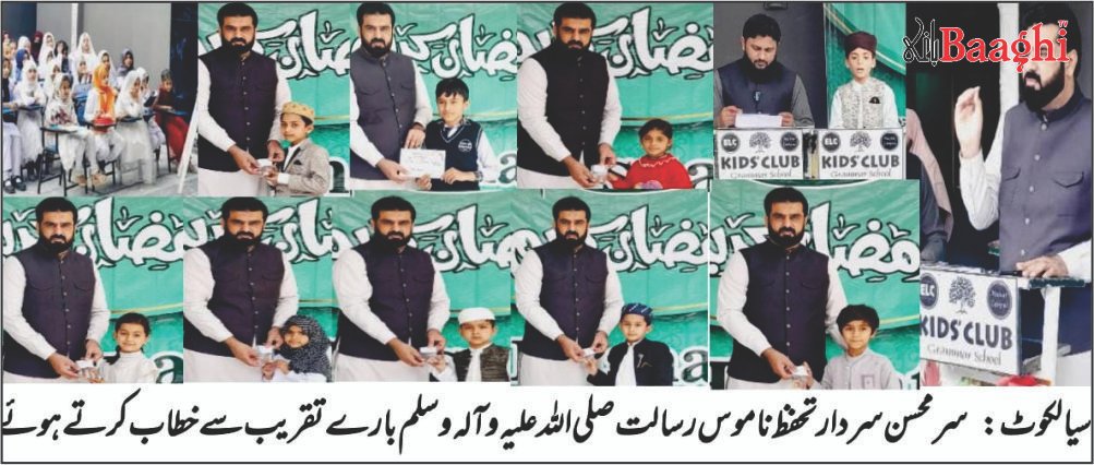 سیالکوٹ،باغی ٹی وی(سٹی رپورٹر مدثر رتو) سیالکوٹ کے نجی تعلیمی ادارے حسین پورہ (ای ایل سی) حسنات کیمپس میں ناموس رسالت ﷺ منایا گیا، جس کا باقاعدہ آغاز تلاوت کلام مجید سے ہوا۔ بچوں نے نعت رسول مقبول ﷺ اور تقاریر بھی پیش کیں۔ پروگرام میں حصہ لینے والے طلباء و طالبات کو انعامات بھی تقسیم کیے گئے۔