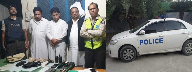 تفصیل کے مطابق پٹرولنگ پوسٹ ساہووالہ پوسٹ انچارج SI محمد یوسف معہ ملازمان کے مطابق دوران گشت و ناکہ بندی انہوں نے پل نہر موترہ ایک مشکوک کار کرولا نمبری CH 3164 جس پر دونوں طرف پولیس لکھا ہوا تھا جسکے ساتھ ایک VIGO ڈالا بھی تھا جنکو روکنے کی کوشش کی جو فرار ہو گئے