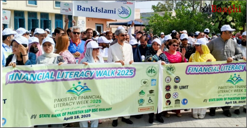 سیالکوٹ ،باغی ٹی وی(مدثر رتو، سٹی رپورٹر ) سٹیٹ بینک آف پاکستان کے زیر اہتمام پاکستان فنانشل لٹریسی ویک 2025 (پی ایف ایل ڈبلیو) کے سلسلے میں سیالکوٹ میں ایک فنانشل لٹریسی واک کا انعقاد کیا گیا۔ گورنمنٹ کالج وویمن یونیورسٹی میں منعقدہ اس واک کی صدارت رکن صوبائی اسمبلی چوہدری فیصل اکرام اور چیف مینیجر اسٹیٹ بینک آف پاکستان فوزیہ اسلم نے کی۔