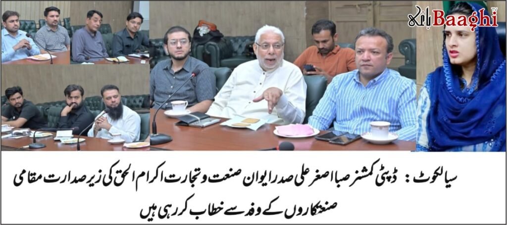 سیالکوٹ (باغی ٹی وی، بیوروچیف شاہد ریاض)ڈپٹی کمشنر سیالکوٹ صبا اصغر علی سے ایوان صنعت و تجارت سیالکوٹ اور سمال انڈسٹریل اسٹیٹ شہاب پورہ کے نمائندگان نے اہم ملاقات کی۔ ملاقات میں ایوان صنعت و تجارت کے صدر اکرام الحق، سمال انڈسٹریل اسٹیٹ ایسوسی ایشن کے چیئرمین طاہر مجید کپور سمیت مقامی صنعت کار اور تاجر شریک تھے۔