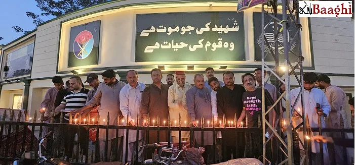 سیالکوٹ،باغی ٹی وی( نامہ نگاہ مہر مصطفے کی رپورٹ )سانحہ 9 مئی،پاک فوج سے اظہار یکجہتی، شہداء وال پر شمعیں روشن کی گئیں