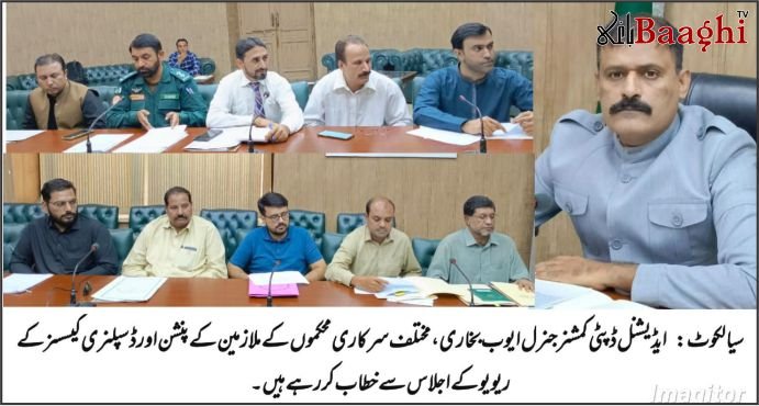 سیالکوٹ (باغی ٹی وی، بیوروچیف شاہد ریاض) ایڈیشنل ڈپٹی کمشنر جنرل سیالکوٹ ایوب بخاری کی زیر صدارت ایک اہم اجلاس میں مختلف سرکاری محکموں کے ملازمین کے ضابطہ اخلاق، پنشن اور جی۔پی فنڈ کیسز کا تفصیلی جائزہ لیا گیا۔