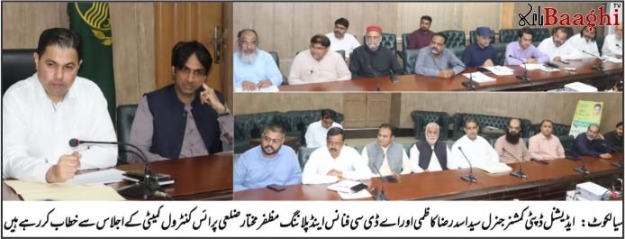 تفصیلات کے مطابق ایڈیشنل ڈپٹی کمشنر جنرل سید اسد رضا کاظمی کی زیر صدارت ڈسٹرکٹ پرائس کنٹرول کمیٹی کا اجلاس منعقد ہوا۔ اجلاس میں اشیائے خورد و نوش کی قیمتوں کا تفصیلی جائزہ لیا گیا اور کمیٹی کی مشاورت سے نئی قیمتوں کا تعین کیا گیا۔