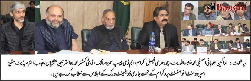 سیالکوٹ,باغی ٹی وی (سٹی رپورٹر مدثر رتو)اراکین صوبائی اسمبلی محمد منشاء اللہ بٹ اور فیصل اکرام چودھری کو پراجیکٹ ڈائریکٹر پیسپ حمزہ سالک اور نیسپاک ٹیم کی جانب سے پیسپ پراجیکٹ پر تفصیلی بریفنگ دی گئی۔ اس موقع پر ڈپٹی کمشنر محمد ذوالقرنین لنگڑیال، خواجہ ٹیپو، ایڈمنسٹریٹر میونسپل کارپوریشن اقبال سنگھیڑا، چیف انجینئر پیسپ شیخ طاہر، سیف اللہ، سی او ایم سی ایس ملک اعجاز اور سٹی مینیجر پیسپ علی خان بھی موجود تھے۔