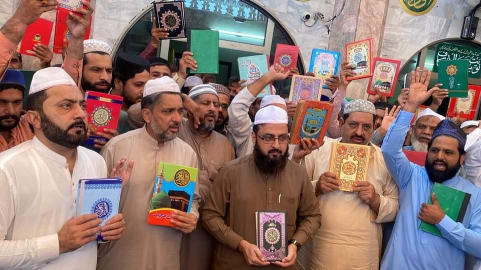 ( 5 . 1 ) بلین سے زیادہ مسلمانوں کے قلب و جگر کو چھلنی کیا ہے اظہار رائے کی آزادی کی آڑ میں ہماری مقدس کتاب کی توہین کرنا کھلی فکری مذہبی دہشت گردی اور نفرت انگیز عمل ہے لہذا ہمارا یہ مطالبہ ہے کے گورنمنٹ آف پاکستان فوری طور پر سویڈن کے ساتھ تعلقات ختم کرے اور سویڈن کے سفیر کو واپس بھیج کر اپنا بھر پور احتجاج ریکارڈ کروائے اور آئندہ ایسے عمل کو روکنے کے لیے ٹھوس اقدامات کرے اس موقع پر امت مسلمہ کی بڑی تعداد نے بھی بھرپور شرکت کی اور اپنا احتجاج ریکارڈ کروایا