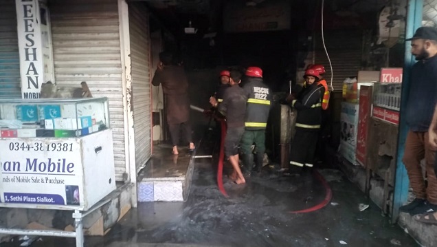 سیالکوٹ ،باغی ٹی وی (سٹی رپورٹرشاہدریاض) سیٹھی پلازہ میں موبائل شاپ میں آگ لگ گئی
