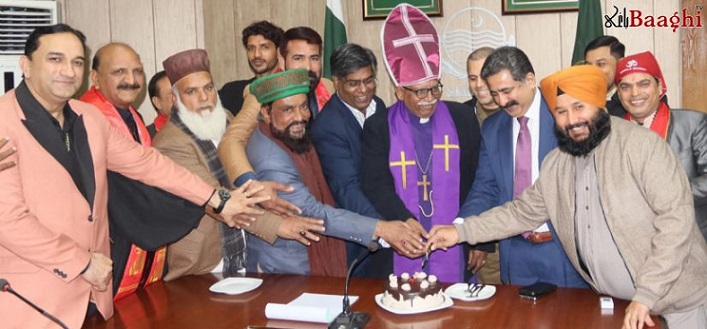سیالکوٹ،باغی ٹی وی (بیوروچیف شاہد ریاض) کرسمس کے موقع پر بین المذاہب ہم آہنگی کا مظاہرہ۔کرسمس کیک کاٹاگیا