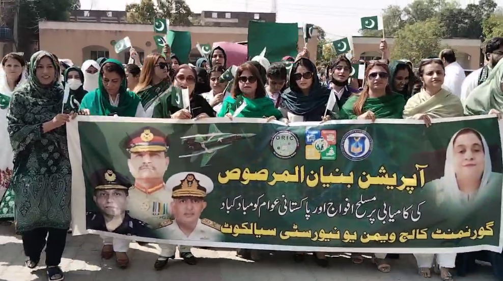 سیالکوٹ( باغی ٹی وی، بیوروچیف شاہد ریاض)آپریشن بنیان مرصوص کی فتح پر جی سی ویمن یونیورسٹی میں جشن کا سماں