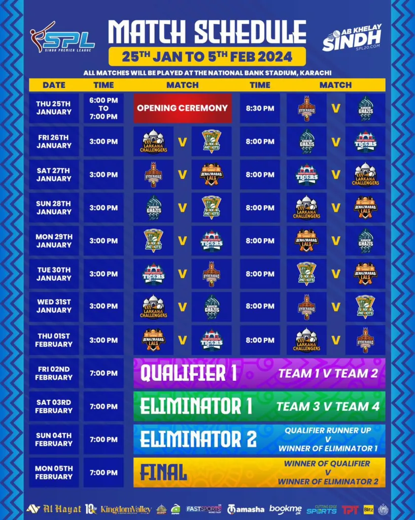 انتہائی متوقع ایونٹ میں چھ ٹیمیں شامل ہوں گی جن میں بے نظیر آباد لالز، حیدرآباد بہادرز، کراچی گلیڈی ایٹرز، خیرپور رائلز، لاڑکانہ چیلنجرز اور سکھر پیٹریاٹس شامل ہیں۔یاد رہے کہ ایس پی ایل 14 سے 25 دسمبر تک شیڈول تھا تاہم پی سی بی کی جاری پریذیڈنٹ ٹرافی کے بعد اسے ملتوی کر دیا گیا تھا۔ایک بیان میں ایس پی ایل کی انتظامیہ نے دوبارہ شیڈول کا اعلان کیا۔ جس کے مطابق بغور غور و فکر کے بعد اور لیگ کے مجموعی تجربے کو بڑھانے کے مفاد میں، آرگنائزنگ کمیٹی نے ایس پی ایل کو 25 جنوری سے 5 فروری 2024 تک نئی تاریخوں پر شیڈول کرنے کا فیصلہ کیا ہے۔ یہ توسیع ہمیں مستعدی سے ایک ایسے ایونٹ کی منصوبہ بندی اور اس پر عمل درآمد کرنے کی اجازت دیتی ہے جو SPL سے متوقع بہترین کارکردگی کے معیار کو برقرار رکھتا ہے۔ یہ فیصلہ ایک جامع جائزے کے بعد کیا گیا جس کا مقصد تمام شامل افراد کی شرکت اور لطف اندوزی کے لیے زیادہ سازگار ماحول کو یقینی بنانا ہے،‘‘ بیان میں اختتام پذیر ہوا۔