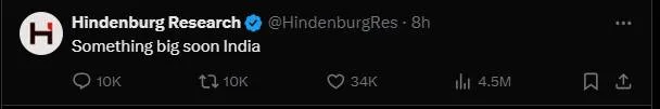 ہنڈن برگ ریسرچ کی جانب سے یہ پیغام اڈانی گروپ کی کمپنیوں کے خلاف اسٹاک مارکیٹ میں اندرونی تجارت اور دیگر خلاف ورزیوں کے الزامات کو شائع کرنے کے ایک سال سے زائد عرصے کے بعد سامنے آیا ہے، بھارتی میڈیا بھی پیغام کو نشر کر ر ہا ہے اور تجزیئے جاری ہیں، لوگوں کے ذہنوں میں سوال اٹھ رہے ہیں کہ کیا ہنڈن برگ ریسرچ کسی اور کمپنی کے بارے میں تو کوئی انکشاف نہیں کرنے جا رہی، کیا پھر اڈانی گروپ کا ہی نیا سیکنڈل تو سامنے نہیں آ رہا، ہنڈن برگ ریسرچ کے سوشل میڈیا پر پیغام نے بھارتی میڈیا میں تجسس پیدا کر دیا ہے، سب اس پیغام کا مطلب سمجھنے کی کوشش کر رہے ہیں لیکن کسی کو کچھ سمجھ نہیں آ رہی،