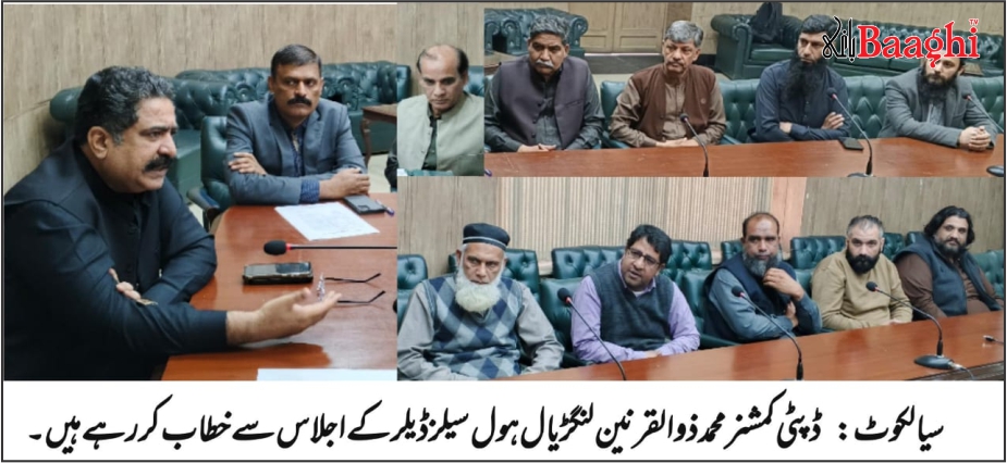 سیالکوٹ ،باغی ٹی وی (سٹی رپورٹر مدثر رتو) ڈپٹی کمشنر سیالکوٹ محمد ذوالقرنین لنگڑیال نے ضلع سیالکوٹ کے چینی، دالوں، گھی اور چکن سمیت دیگر اشیائے خوردونوش کے ہول سیل ڈیلروں کے اجلاس سے خطاب کرتے ہوئے کہا کہ رمضان المبارک میں اشیائے خوردونوش کی طلب میں اضافہ ہو جاتا ہے اور صارفین کو اشیائے خوردونوش کی کنٹرول ریٹ پر بلا تعطل فراہمی ضلعی انتظامیہ اور ہول سیل ڈیلروں کی مشترکہ ذمہ داری ہے۔